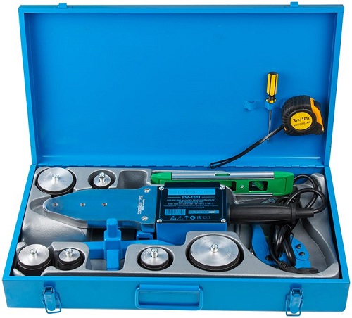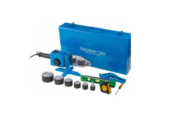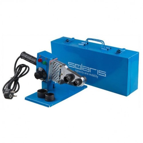 Typ urządzenia Moc 1500 W (750/1500 W) Maksymalna temperatura 300°C (50-300°C) Średnica robocza 20 mm, 25 mm, 32 mm, 40 mm, 50 mm, 63 mm Typ grzałki: Mieczowa Powłoka teflonowa Termostat Czas nagrzewania: 3 min (3-5 minut) Elementy grzejne ze stopniowaną regulacją Długość przewodu zasilającego: 1,5 m W zestawie 6 wymiennych końcówek Obcinak do rur Walizka W zestawie: Spawarka; Końcówki; Statyw zaciskowy; Klucz; Miarka taśmowa 3 m; Poziomica; Nożyce do cięcia rur. Wymiary i waga Waga: 4,8 kg